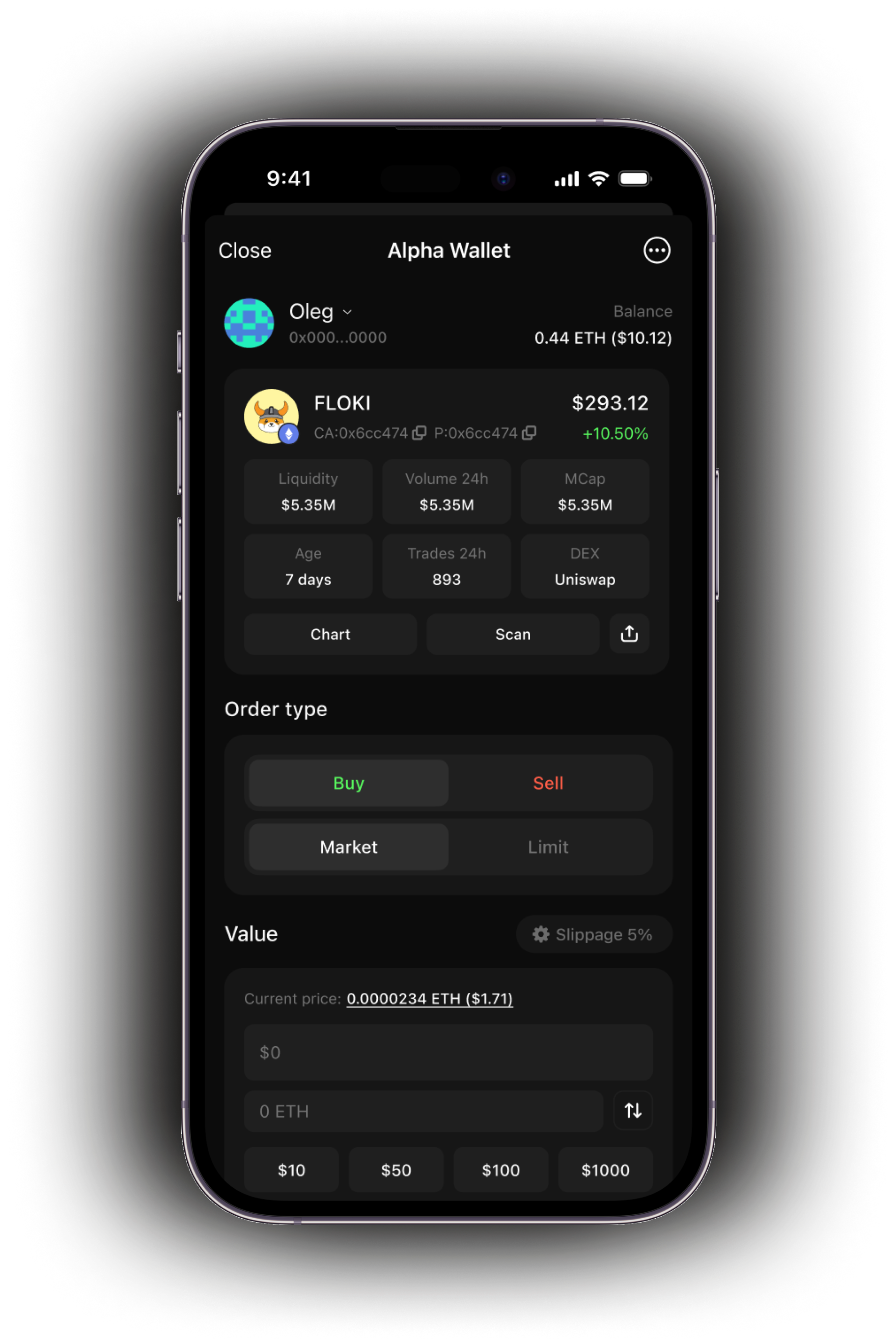 Автоматическая торговля токенами с использованием инструментов исследования Alpha DEX. Установите предпочтительные параметры, такие как рыночная капитализация, объем, ликвидность и многие другие
